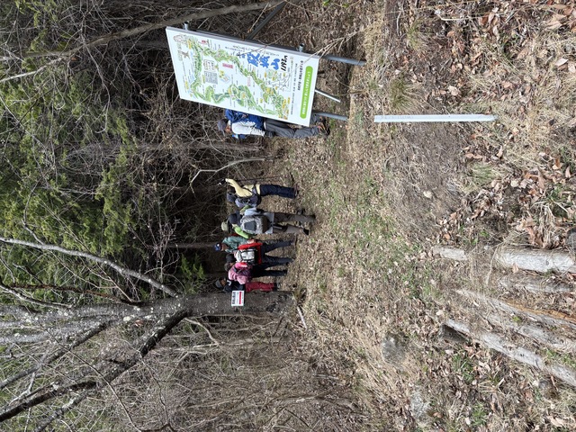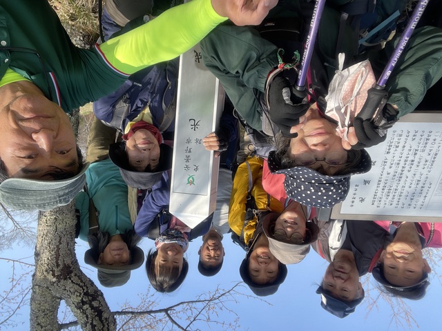 登山口からつづら折りの急坂を登り山頂へ。山頂からは眼下に上田市街地が広がり、正面には北アルプスを望むことが出来るはずだったが、この日はあいにくの曇り空で、残念ながらアルプスの展望はかなわなかった。山頂から柳狭間への下山途中で、烏帽子岳を遠くに眺める事が出来た。風の吹きあがる広く伐採された脇を抜け、緩やかに尾根道を下りる。早春の山歩きを楽しむ事が出来た。
