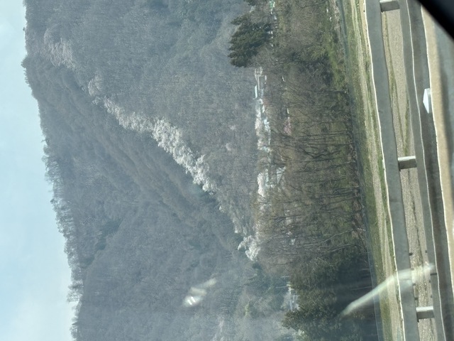 光城山に戻り、陽が高くなって霞はじめたアルプスと、美しく咲きほこった桜を愛でながら、ゆっくり下山する。帰りの車窓からは光城山の山腹を桜が咲き上がっていく様が見てとれ、「あぁ!あの桜の下を登って行ったんだね」と感激を新たにした。