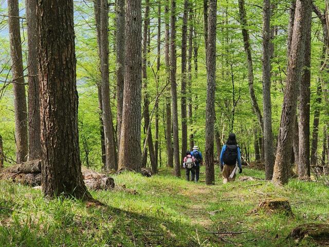 不動尊分岐からの登山道はカラマツの林のなか、気持ち良い5月の風と共に不動尊に到着。