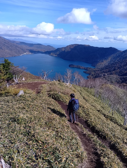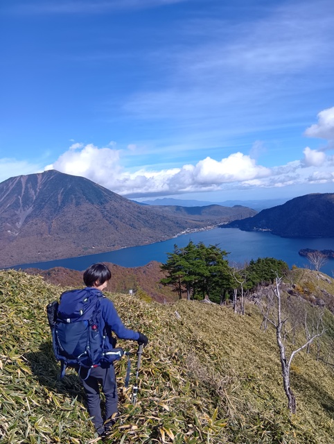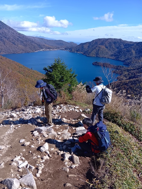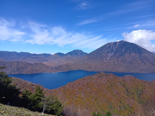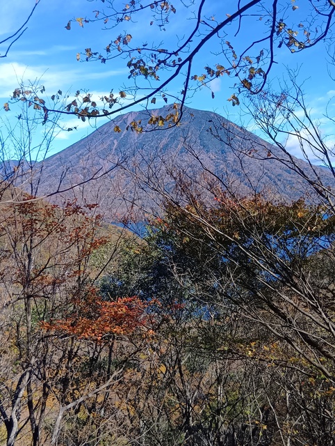 見る角度で男体山も中禅寺湖も色と形が変わる。1567標高点から見る向側1564mの尾根(南東尾根?)の赤色がなんてきれいなの!