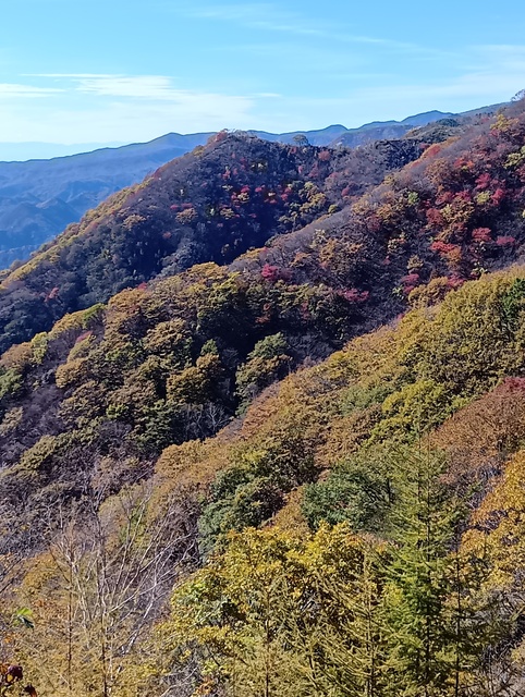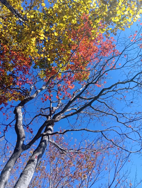 山頂でゆっくりお昼とお茶を楽しみ降りる。暑かった夏のご褒美が、この紅葉。ありがとう。