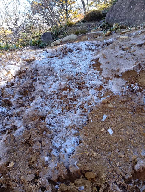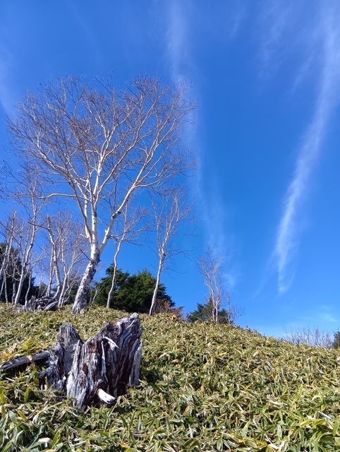 日光白根は山頂付近が白く前日の雨が朝方に雪になり(現地の人曰く)、霧氷もついていた。