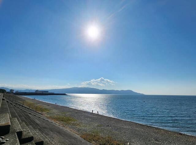 予定の時刻よりだいぶ遅くなって静岡県入りとなったので、今日は蒲原三山に行くことにして沼津千本松公園でゆっくり昼食にした。が海辺は鳶が観光客の弁当を狙っており、私はおむすびを盗られた!