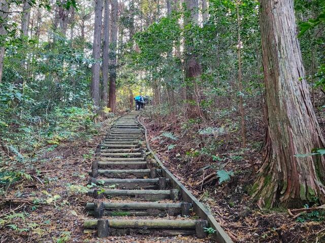 気を取り直して蒲原町の城址公園脇から稜線の駐車場に登り、ここからスタートした。小山と舐めていたが、最初の急な階段道には閉口。しかし登りきればあとはゆるゆると上り下りを繰り返せば、1時間あまりで三山縦走は完結。駿河湾の眺望と時々覗く薄雪の富士山頂が気分を盛り上げてくれた。帰路は例によって強引な近道作戦で、駐車場近辺ではすべての踏み跡に「この先行き止まり」の表示があったが、そんなところに下山してきた。まぁ里山だからね。