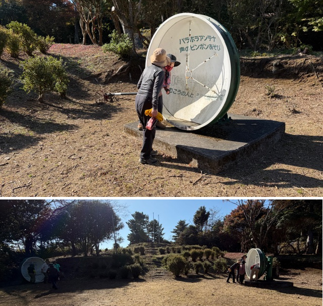 駐車場に戻り、まだ時間もあるので、浜石岳方面に行ってみようと、これまた急な細い林道を登ってみた。すると途中に浜石野外センターなる施設を見つけて、ひとしきりここで時間つぶし。どうやらここの利用について、地元住民のみなさんが色々と策を巡らせているようで、公共施設の運営について経済的な負担などの様々な問題を抱えていることが見て取れた。でもここは眺めもいいし、他では見たことのない糸電話の代わりになりそうな一対のパラボラアンテナがあったりして年甲斐もなくはしゃいでしまった。