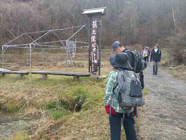 小諸市を流れる千曲川は小諸城址よりかなり低いところを流れているので歩き出しは下り坂である。行き着いたところがもどり橋で千曲川を右岸から左岸へと渡る。ここから車道を右方向に進み、千曲小学校が見えてくる三叉路を左へ曲がるが、ここからの道はしばらく登り一辺倒で足に来るが峠状の高点を超えると下り道になり、のどかな農村の風景が広がる。このあたりから「浅間・八ヶ岳パノラマトレイル」の道標が現れるので、これに従って進む。雲上の農村から路は落ち葉の積る細路に変わり急坂を下りきったところが「鴇久保ビオトープ」で小さな池が有った。ここからの浅間山の展望は抜群に美しい。