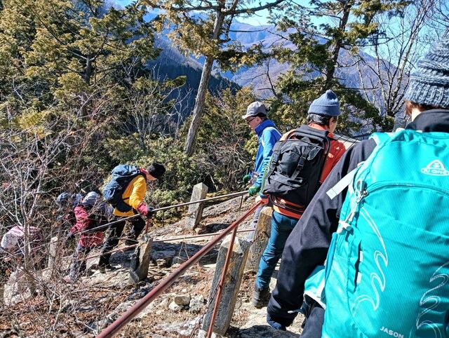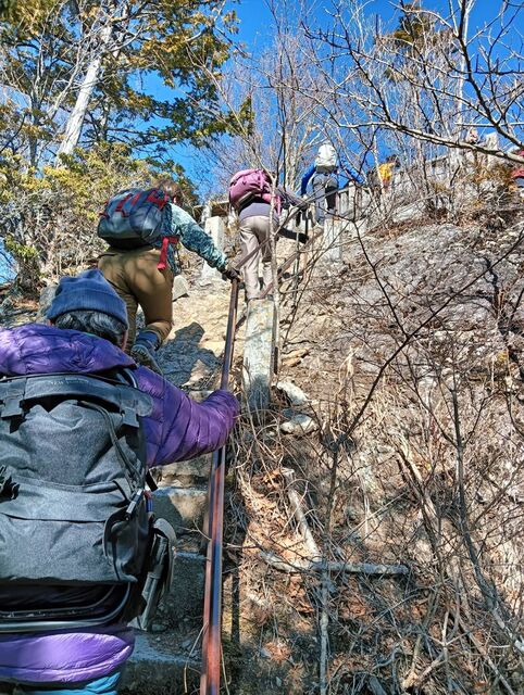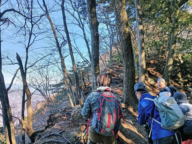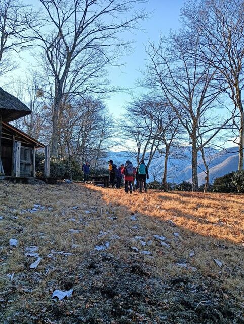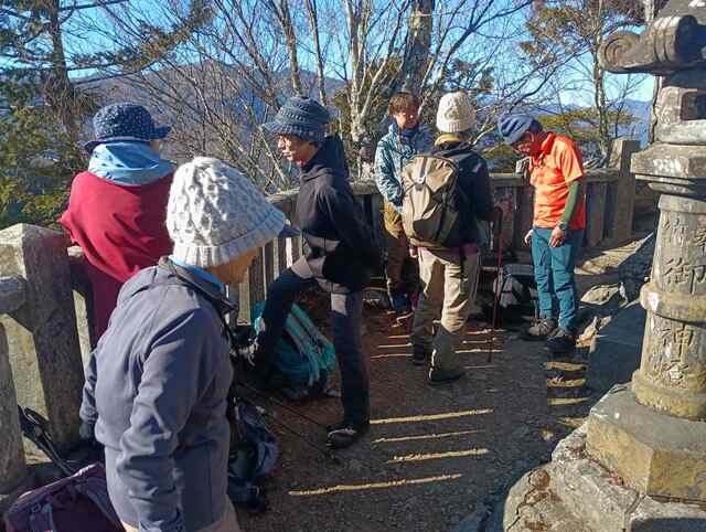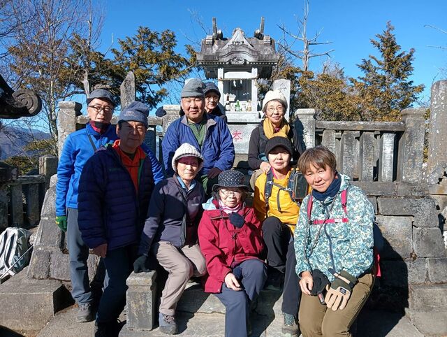 閑話休題、今年も寒風が染みる絶好の晴れ日で山行は9名の参加となりました。ルートは霜柱もあるしばれた林道ではありますが、快適ルート、少しの急登を登れば目的の奥宮に到着する。奥宮前でゆったりの絶景と雑談を楽しむ。下山して三峰神社に参拝、今年も大過なく登山をできたことに感謝した。